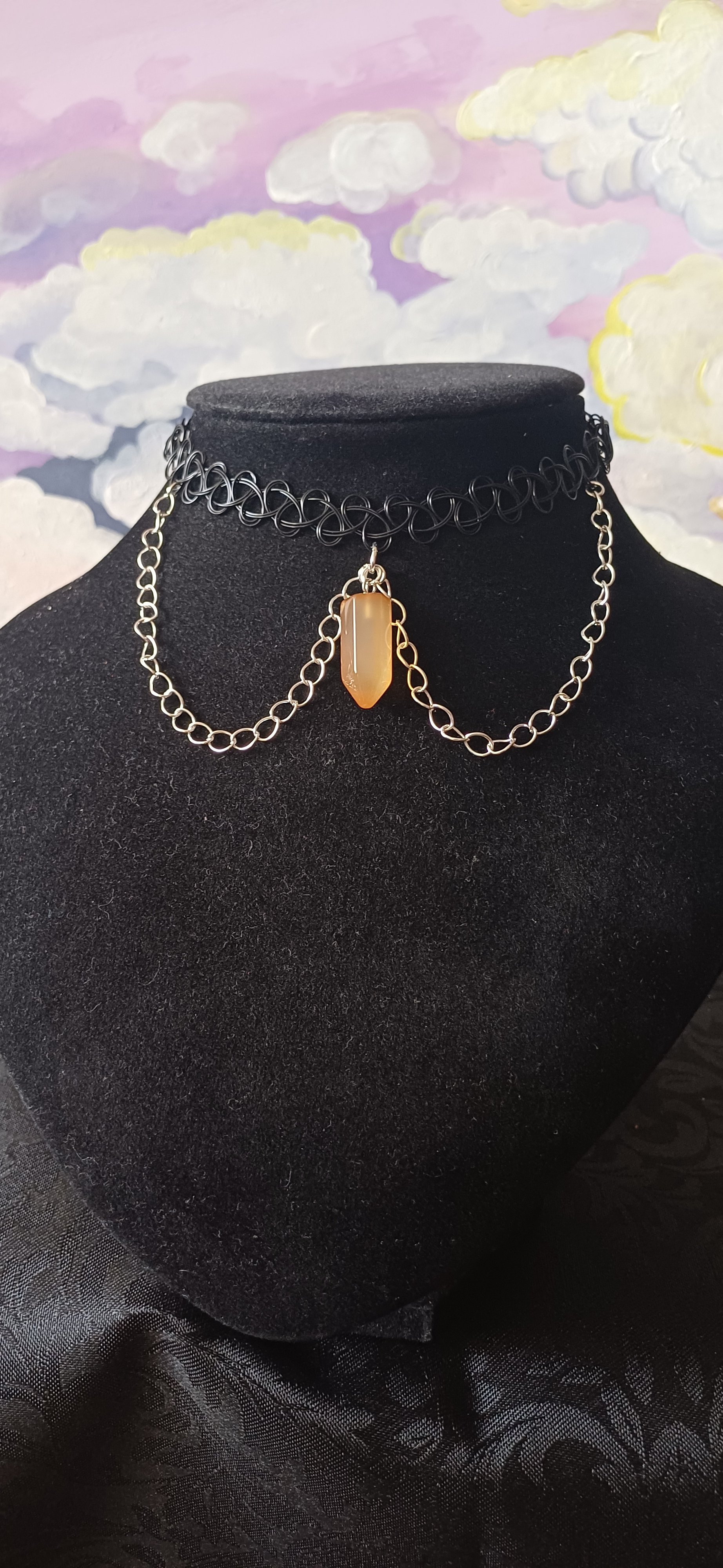 Reaching into the 90s with a twist with this one. This choker is perfect for dressing up a casual outfit. This uses a Genuine Carnelian Pendant