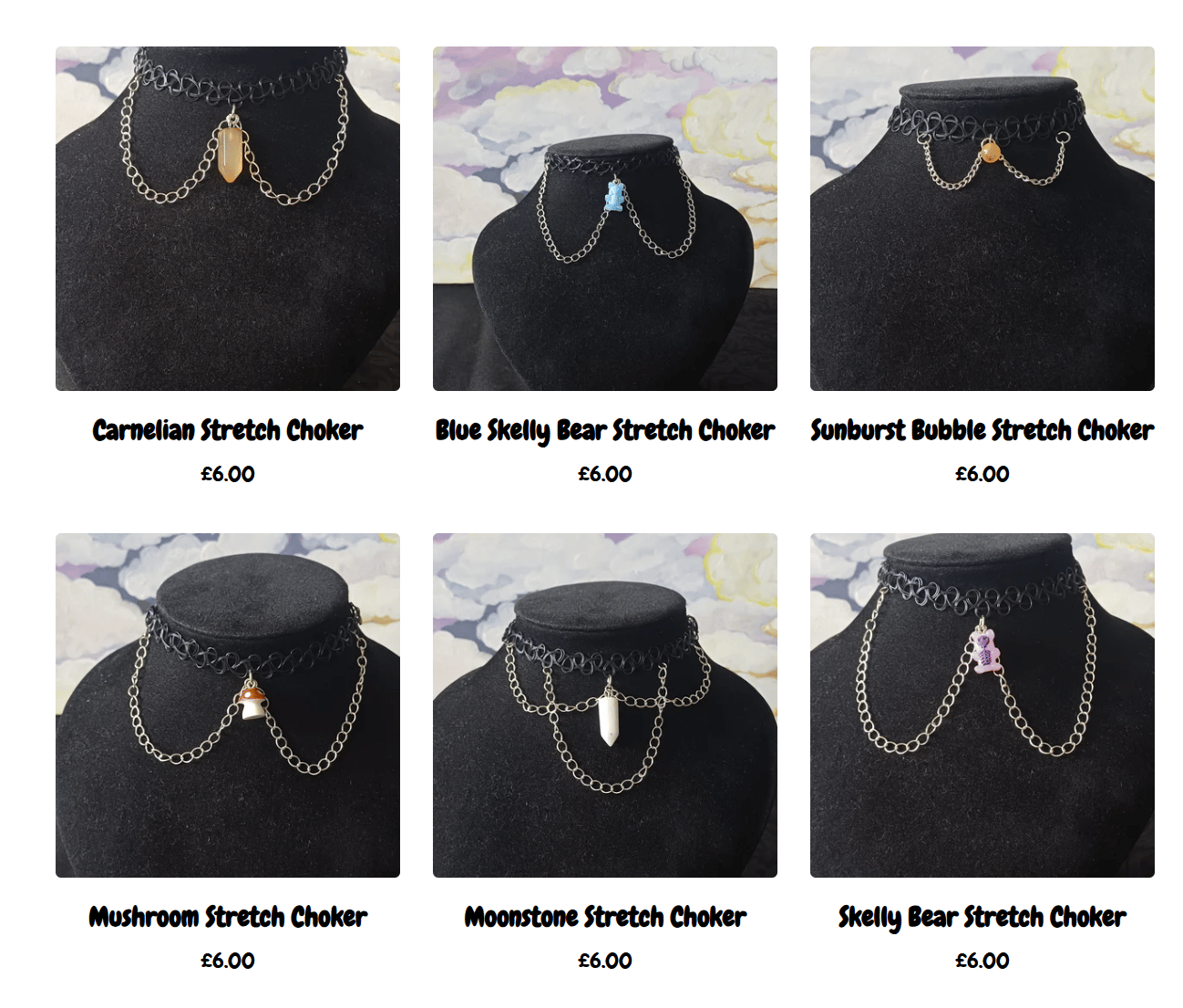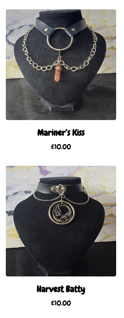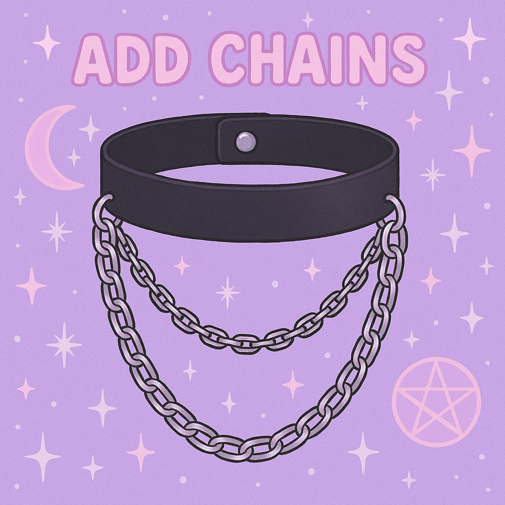 Just add this upgrade to your cart along with your chosen choker β Iβll hand-attach the chains for you based on a standard complimentary layout. if you select double chains i will mimic the layout of the chains already on thereπ« Examples ( curtesy of AI) can be found in the images and some examples of chokers with chains already