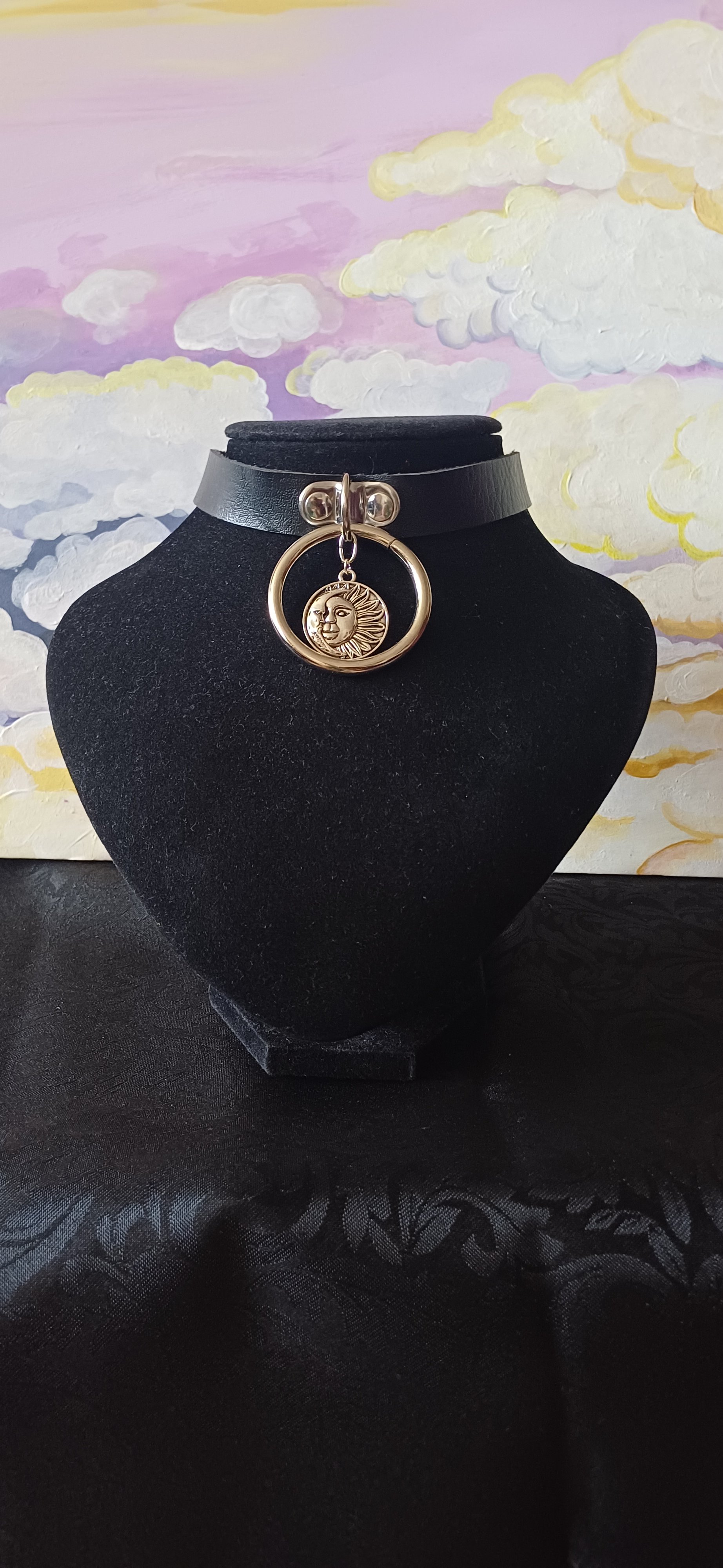 A simple choker with a sun and moon pendant within a large steel ring. Witchy and dark just like it's future wearer perhaps?