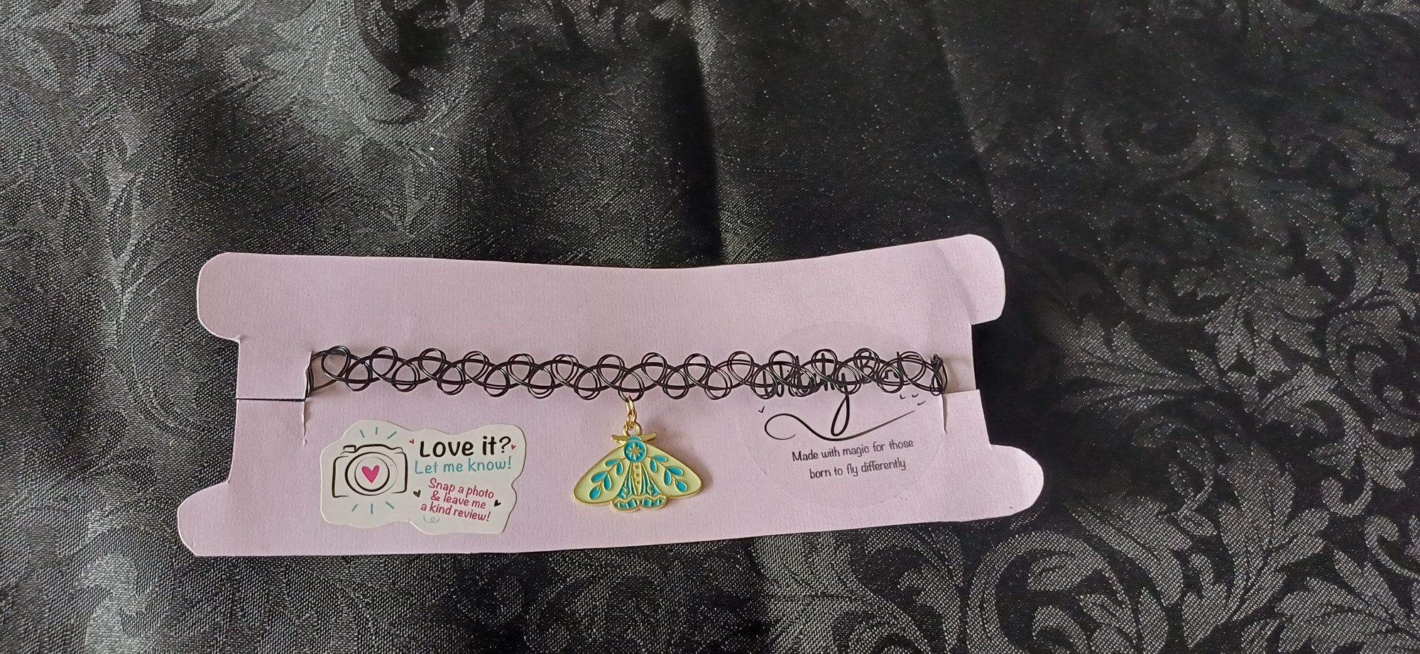 Yellow and Mint Moth Stretch Choker